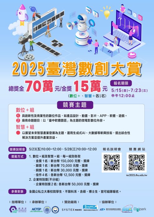 【🔥2025臺灣數創大賞競賽】熱烈報名中! 全國創新菁英集結,挑戰金獎15萬元🏆